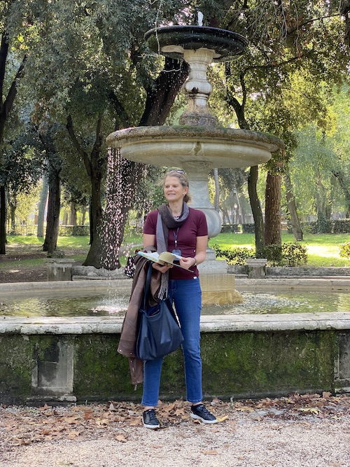 Kristine som underviser i Roma. (Borghese-parken)